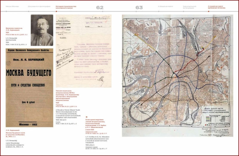 Книга состоит из исторических очерков о строительстве и архитектуре московского и будапештского метро с информацией о фондах по истории столичных подземок. Краткий обзор фондов и некоторых документов РГАЭ, РГАКФФД, ГА РФ, РГАСПИ, РГАНТД, РГА в г. Самаре, РГАНИ, ЦГА г. Москвы демонстрирует разные документальные комплексы, но они дополняют друг друга, создавая целостную картину прошлого. Альбомная часть по Москве состоит из разделов «История строительства Московского метрополитена» и «Метро как архитектурно-художественный памятник». В издании размещены именные комментарии не только об архитекторах, скульпторах и художниках, но и об инженерах, конструкторах и строителях. В конце альбома представлены список сокращений, перечень публикуемых документов и список использованной литературы. Документы и фотографии располагаются преимущественно в хронологической и логической последовательности.