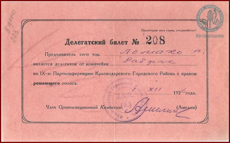 И Петр Фадеевич отправился в Краснодар на Кубанский государственный рабочий факультет имени Ильича. Именно там в 1925 г. он получил партбилет, активно работал в партийных и комсомольских организациях всего Краснодара.